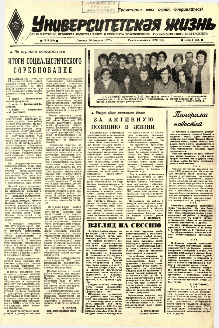 Университетская жизнь : газета. 1975 г. № 5 (94) (28 февраля)выпуск журнала/газеты