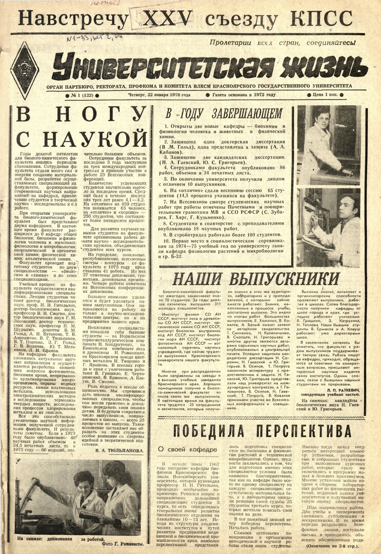 Университетская жизнь : газета. 1976 г. № 1 (122) (22 января)выпуск журнала/газеты