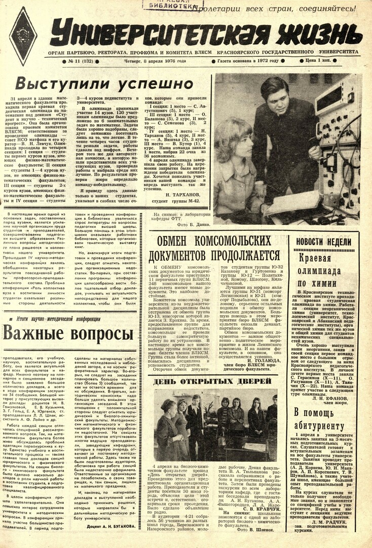 - Встреча выпускников : [вечер встречи выпускников биологического отделения биолого-химического факультета КрасГУ (03.04.1976)]. — С. 2.