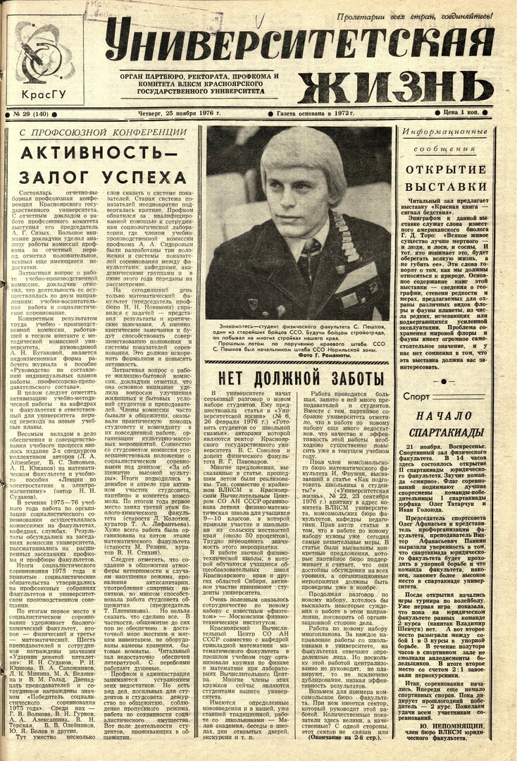 - Активность - залог успеха : [итоги отчетно-выборной профсоюзной конференции КрасГУ]. — С. 1.
