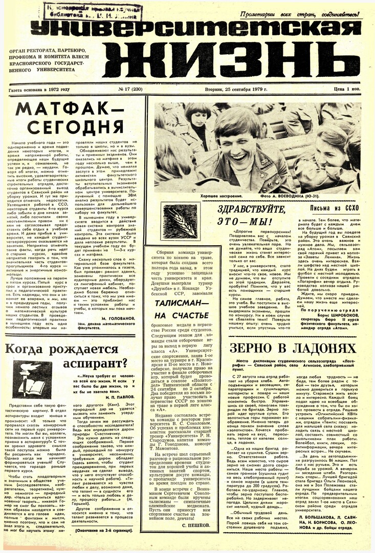Университетская жизнь : газета. 1979 г. № 17 (230) (25 сентября)