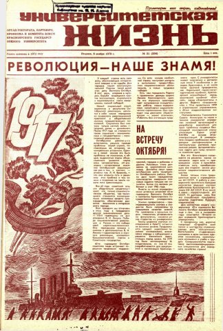 Библиографическое описание:Университетская жизнь : газета/ Красноярский государственный университет. - Красноярск : КрасГУ, 1972 - - 2006 1979г. N 21 (234) (6 ноября)