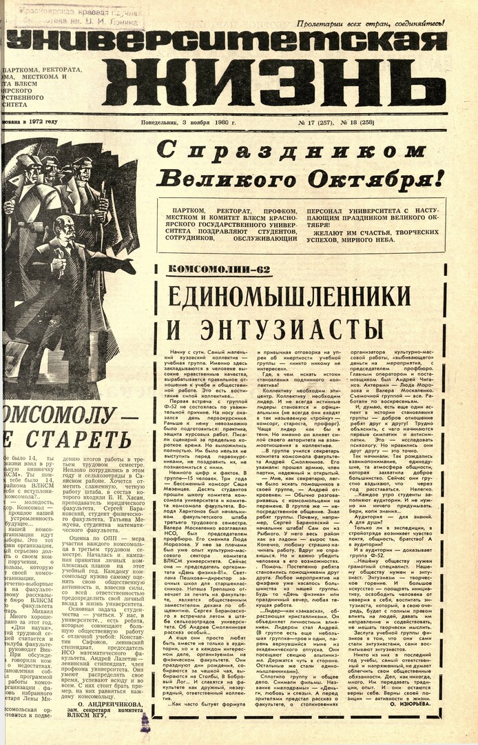 Университетская жизнь : газета. 1980 г. № 17/18 (257-258) (3 ноября)выпуск журнала/газеты