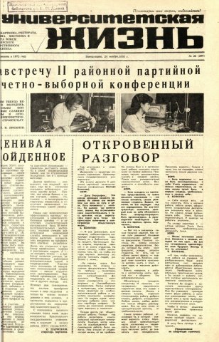 Университетская жизнь : газета. 1980 г. № 20 (260) (24 ноября)выпуск журнала/газеты