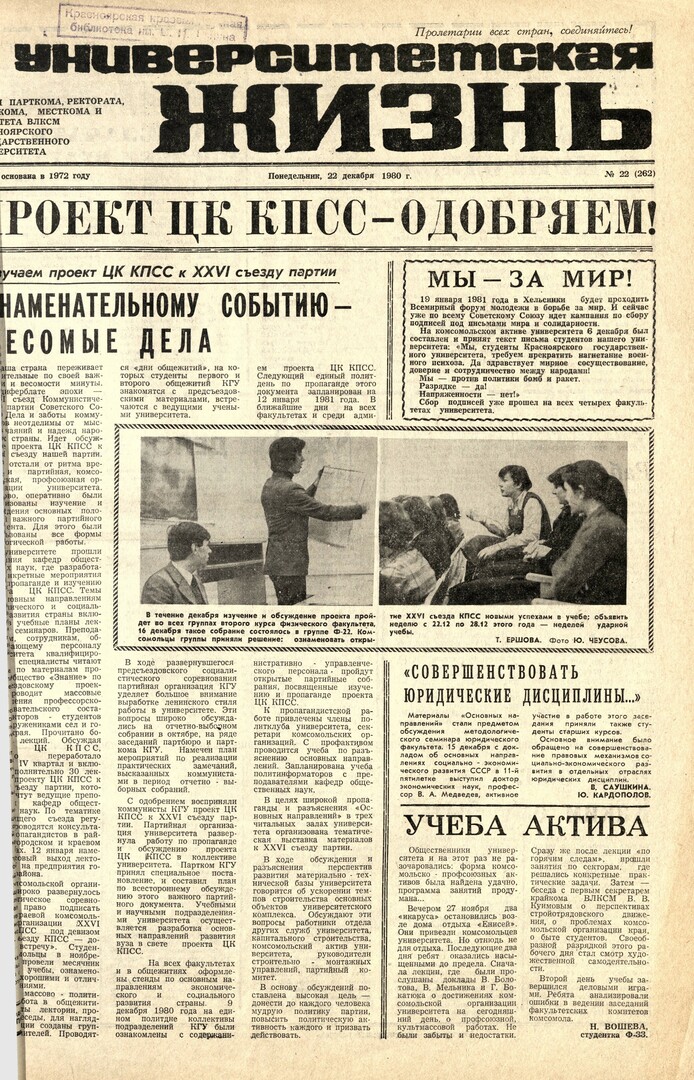 Университетская жизнь : газета. 1980 г. № 22 (262) (22 декабря)выпуск журнала/газеты