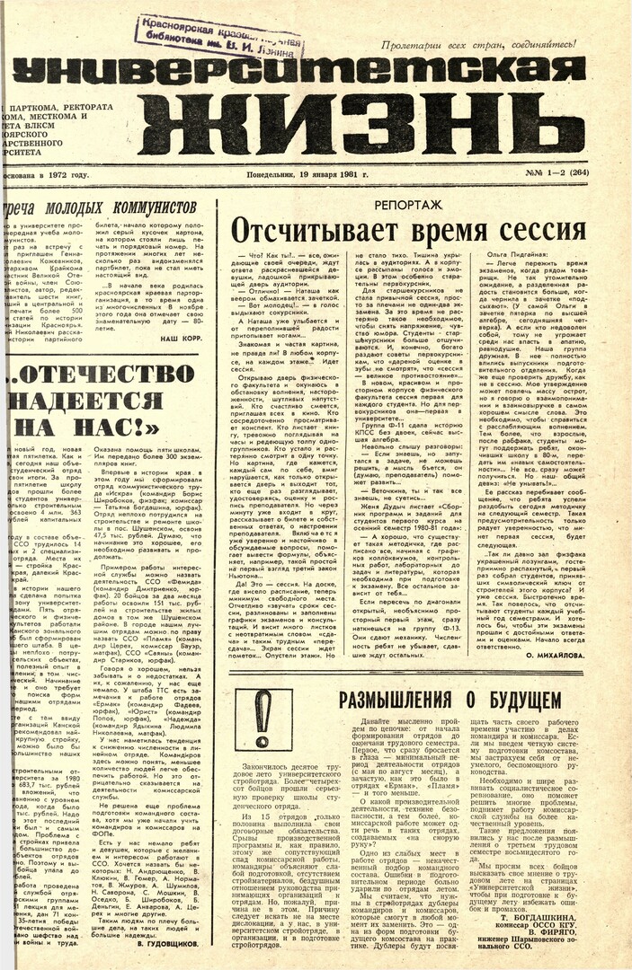 Университетская жизнь : газета. 1981 г. № 1/2 (264) (19 января)выпуск журнала/газеты
