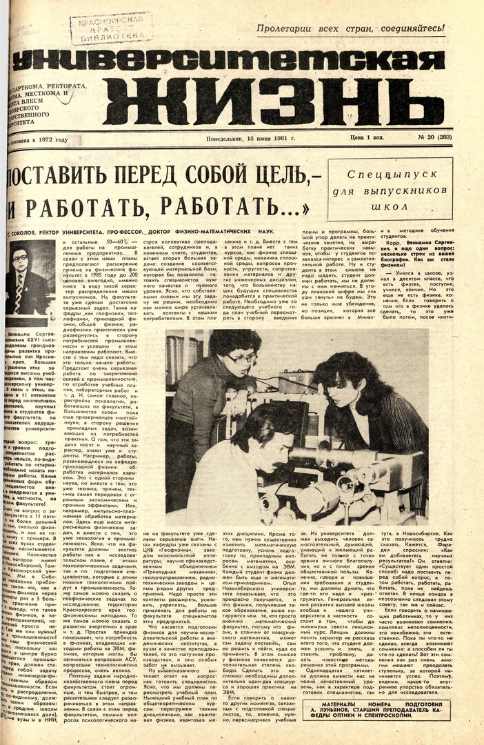 Университетская жизнь : газета. 1981 г. № 20 (283) (15 июня)выпуск журнала/газеты
