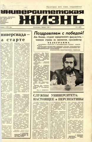 - Поздравляем с победой! : [Лев Псахис, студент юридического факультета - чемпион страны по шахматам, гроссмейстер]. — С. 1.