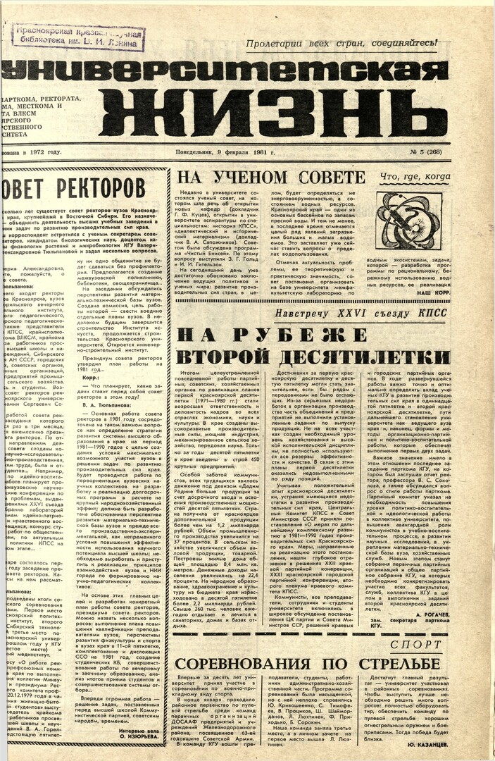 Университетская жизнь : газета. 1981 г. № 5 (268) (9 февраля)выпуск журнала/газеты