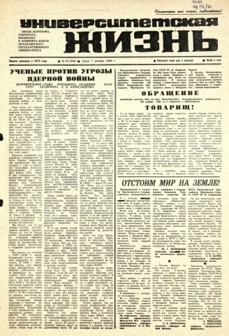 Университетская жизнь : газета. 1983 г. № 35 (343) (7 декабря)
