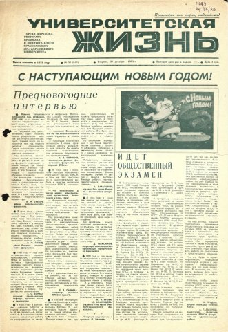Университетская жизнь : газета. 1983 г. № 38 (346) (27 декабря)