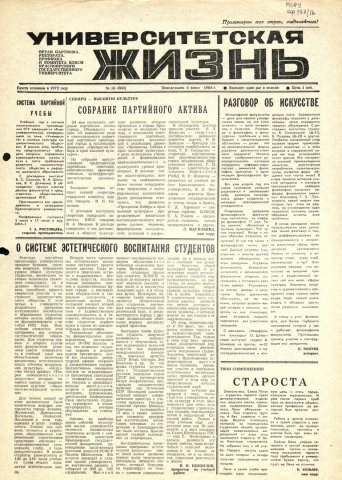 Университетская жизнь : газета. 1984 г. № 16 (363) (4 июня)
