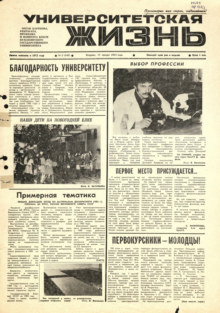 Университетская жизнь : газета/ Красноярский государственный университет. - Красноярск : КрасГУ, 1972 - - 2006 1984г. N 2 (348) (17 января) Полный текст ( 9.6 Мб; PDF). Ресурс свободного доступа