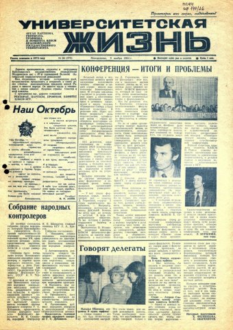Университетская жизнь : газета. 1984 г. № 26 (373) (5 ноября)