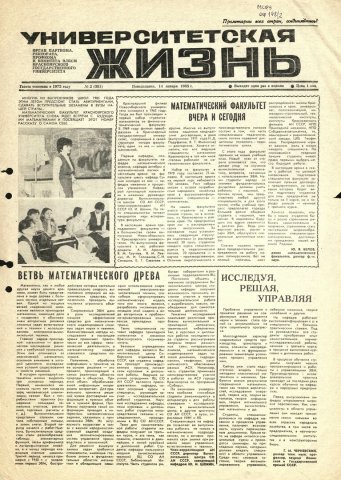 Университетская жизнь : газета. 1985 г. № 2 (381) (14 января)
