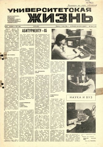 Университетская жизнь : газета. 1985 г. № 22 (351) (2 июля)
