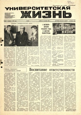 Университетская жизнь : газета. 1985 г. № 25 (354) (21 сентября)