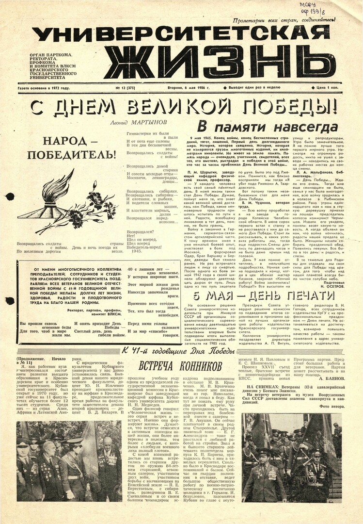 Университетская жизнь : газета. 1986 г. № 12 (375) (6 мая)выпуск журнала/газеты