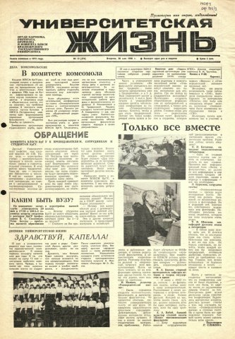 Университетская жизнь : газета. 1986 г. № 13 (376) (20 мая)