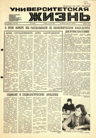 Университетская жизнь : газета. 1986 г. № 14 (377) (10 июня)