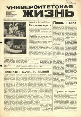 Университетская жизнь : газета. 1986 г. № 23 (386) (2 декабря)