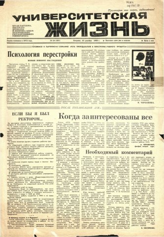 Университетская жизнь : газета. 1986 г. № 24 (387) (16 декабря)