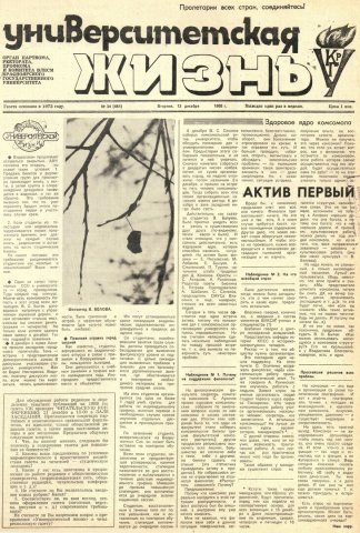 Библиографическое описание:Университетская жизнь : газета/ Красноярский государственный университет. - Красноярск : КрасГУ, 1972 - - 2006 1988г. N 34 (451) (13 декабря)