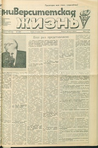 Библиографическое описание:Университетская жизнь : газета/ Красноярский государственный университет. - Красноярск : КрасГУ, 1972 - - 2006 1989г. N 2 (457) (31 января)