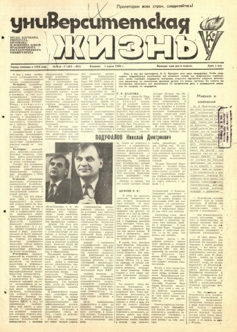 Библиографическое описание:Университетская жизнь : газета/ Красноярский государственный университет. - Красноярск : КрасГУ, 1972 - - 2006 1989г. N 6/7 (461-462) (1 марта)