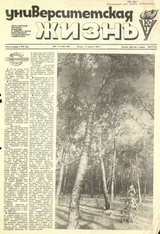 Университетская жизнь : газета/ Красноярский государственный университет. - Красноярск : КрасГУ, 1972 - - 2006 1990г. N 1/2 (499-500) (13 февраля) Полный текст ( 18.5 Мб; PDF). Ресурс свободного доступа