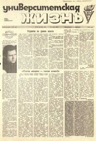 Университетская жизнь : газета. 1990 г. № 21/22 (519-520) (31 октября)