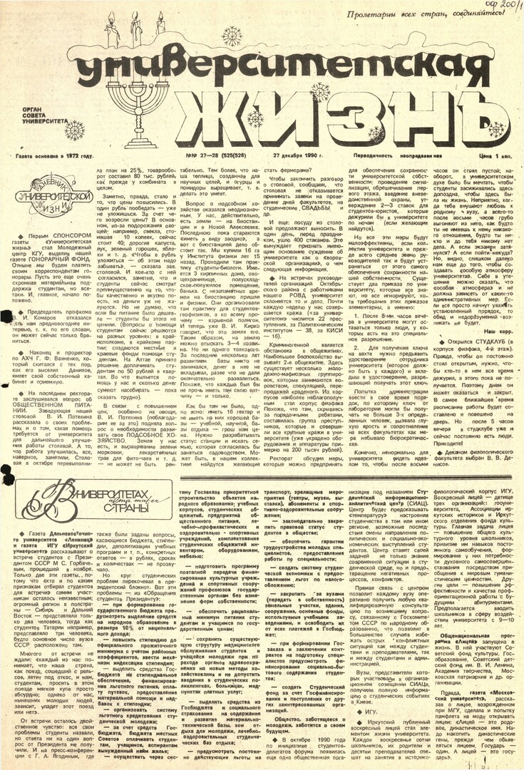Университетская жизнь : газета. 1990 г. № 27/28 (525-526) (27 декабря)