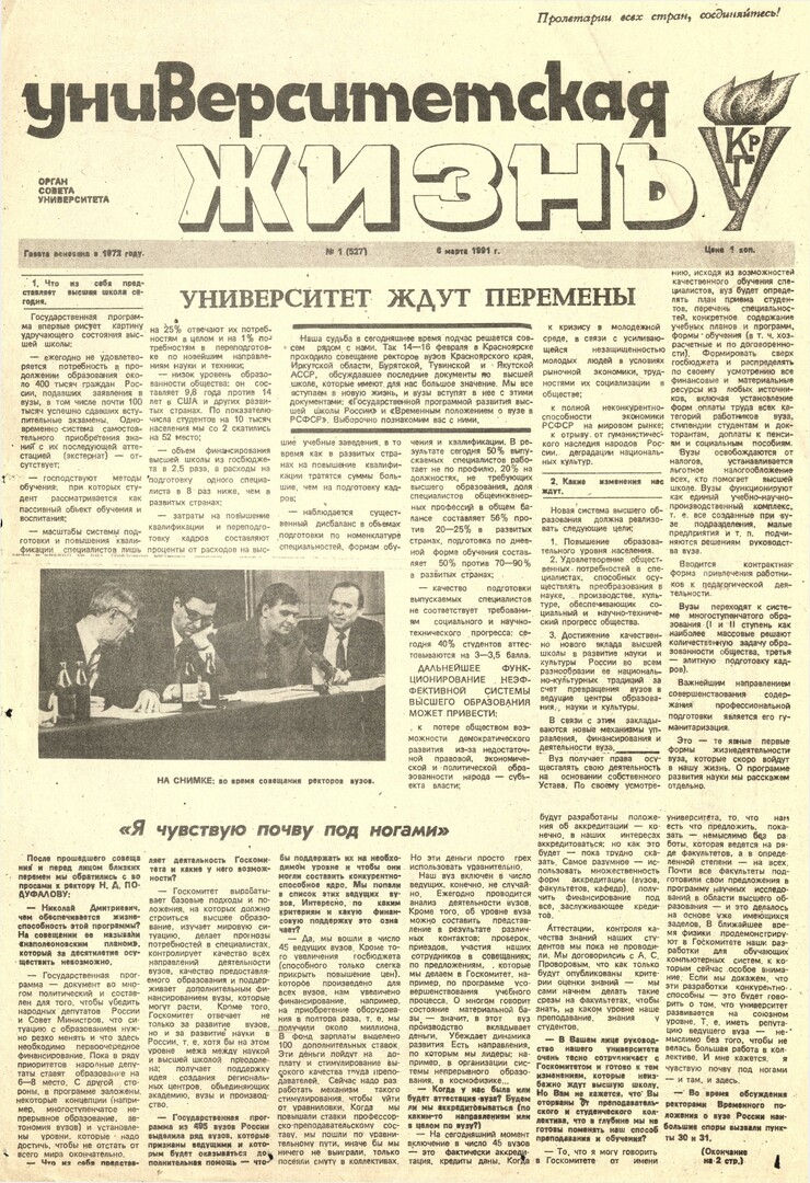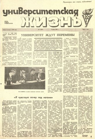 Университетская жизнь : газета. 1991 г. № 1 (527) (6 марта)