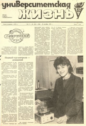 Университетская жизнь : газета. 1991 г. № 17/18 (543-544) (29 октября)