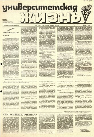 Университетская жизнь : газета. 1991 г. № 6/7 (532-533) (5 июня)