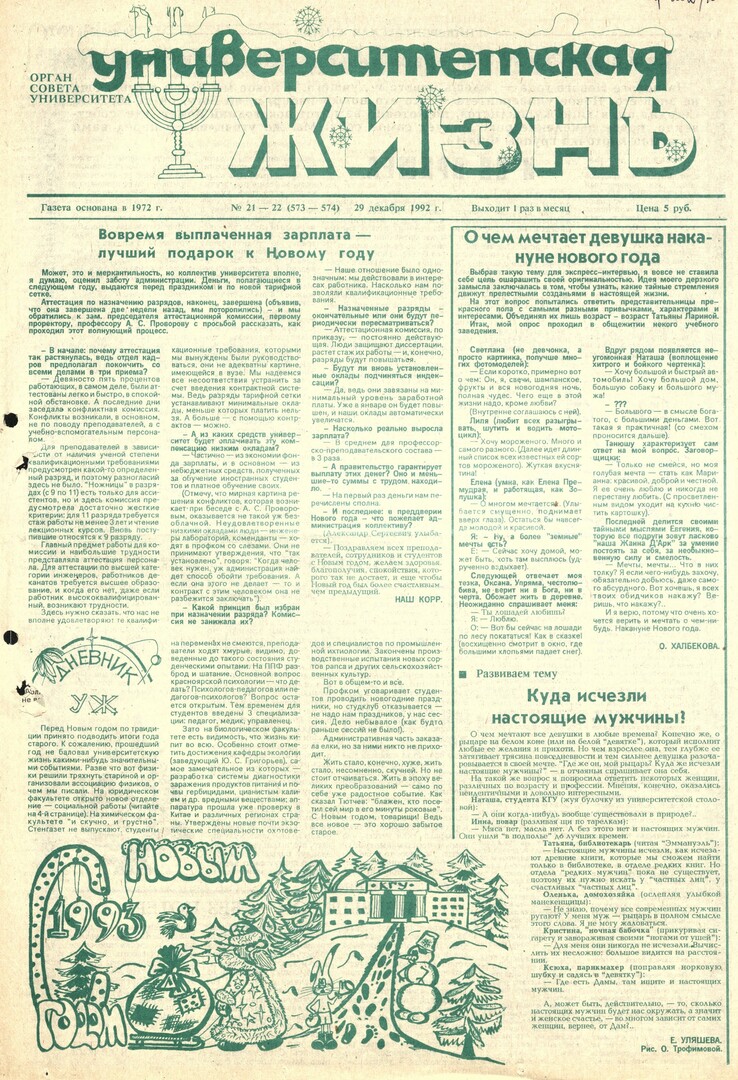 Университетская жизнь : газета. 1992 г. № 21/22 (573-574) (29 декабря)