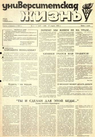 Университетская жизнь : газета. 1992 г. № 5/6 (557-558) (17 марта)