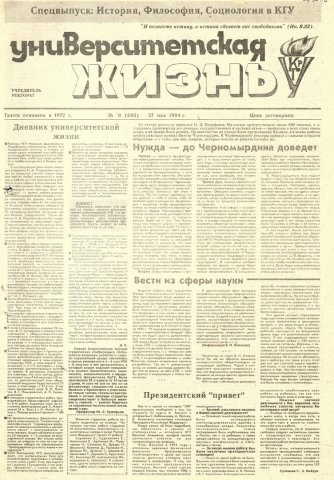 Университетская жизнь : газета. 1994 г. № 6 (595) (27 мая)