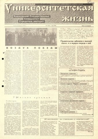 Университетская жизнь : газета. 1996 г. № 7 (631) (7 мая)