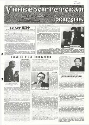 Университетская жизнь : газета. 1997 г. № 5 (644) (22 апреля)