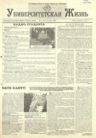 Университетская жизнь : газета. 1999 г. № 4 (675) (12 апреля)