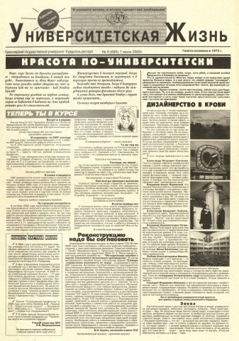 Университетская жизнь : газета/ Красноярский государственный университет. - Красноярск : КрасГУ, 1972 - - 2006 2000г. N 8 (695) (7 июня) Полный текст ( 20.2 Мб; PDF). Ресурс свободного доступа