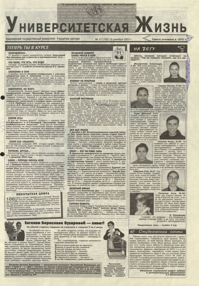Университетская жизнь : газета. 2003 г. № 17 (755) (10 декабря)