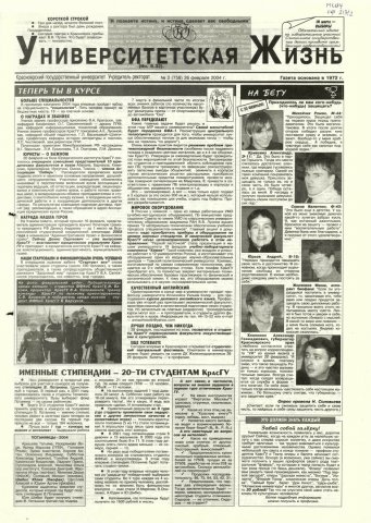 Университетская жизнь : газета/ Красноярский государственный университет. - Красноярск : КрасГУ, 1972 - - 2006 2004г. N 2 (758) (26 февраля) Полный текст ( 13.6 Мб; PDF). Ресурс свободного доступа