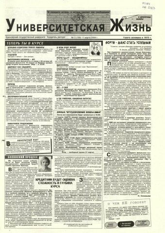 Университетская жизнь : газета. 2004 г. № 3 (759) (11 марта)