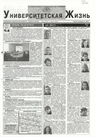 Университетская жизнь : газета. 2005 г. № 5 (779) (11 апреля)
