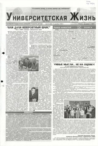 Университетская жизнь : газета. 2006 г. № 24 (820) (14 декабря)