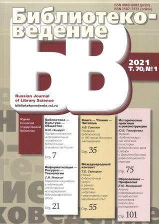 - Библиотековедение : научно-практический журнал. 2021 г. Том 70. № 1
