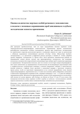 Оценка количества мертвых особей рачкового зоопланктона в водоеме с помощью окрашивания проб анилиновым голубым: методические аспекты применениястатья из журнала