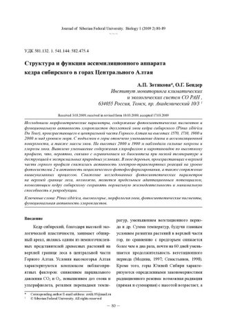 Структура и функция ассимиляционного аппарата кедра сибирского в горах Центрального Алтаястатья из журнала